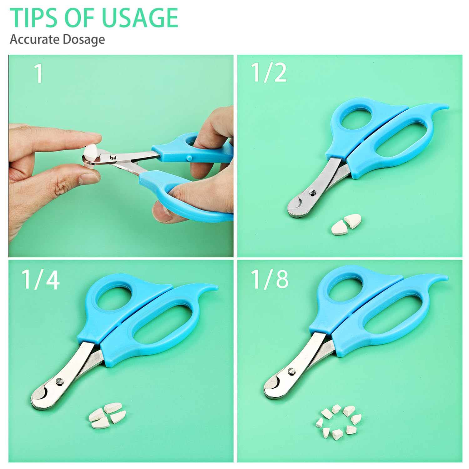 - Main function: pill splitter scissors are designed with nice structure and reliable materials, practical helper for you to cut tablets quickly and accurately; The pill cutter can quickly cut tablets and divide them into 1/2, 1/4, 1/8, etc., can be applied for elderly, children, pets or people who have difficulty in swallowing pills