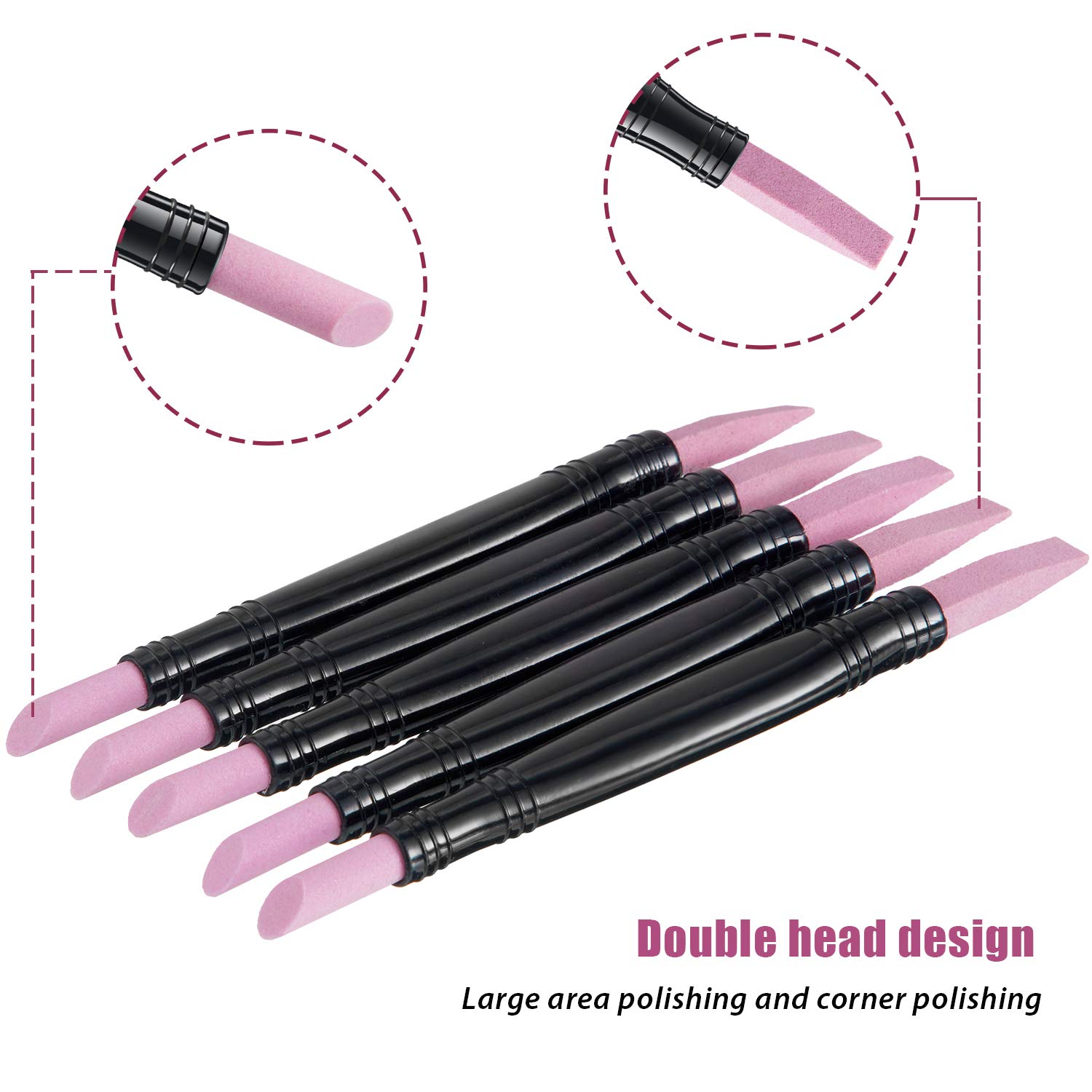 - Double head with ergonomic handle: our nail polishing pen stick is shaped like a pen for ease of holding and using, its ergonomic handle provide a lot of comfort for you to hold while making nail cleaning work easier, what's more, the double-headed design can meet your different needs and give you much convenience to push and clean cuticle