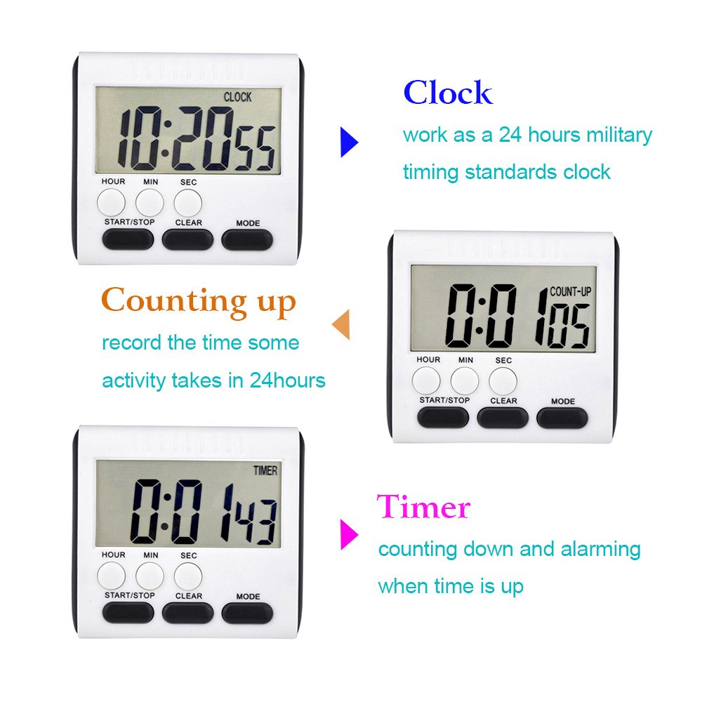 - Reliable Setting Stability: in clock mode, these timers for cooking ensure numbers remain unchanged after 10 seconds, eliminating accidental timing changes; Enjoy peace of mind knowing this stable feature keeps your timing steady and uninterrupted, aligning perfectly with busy or dynamic environments